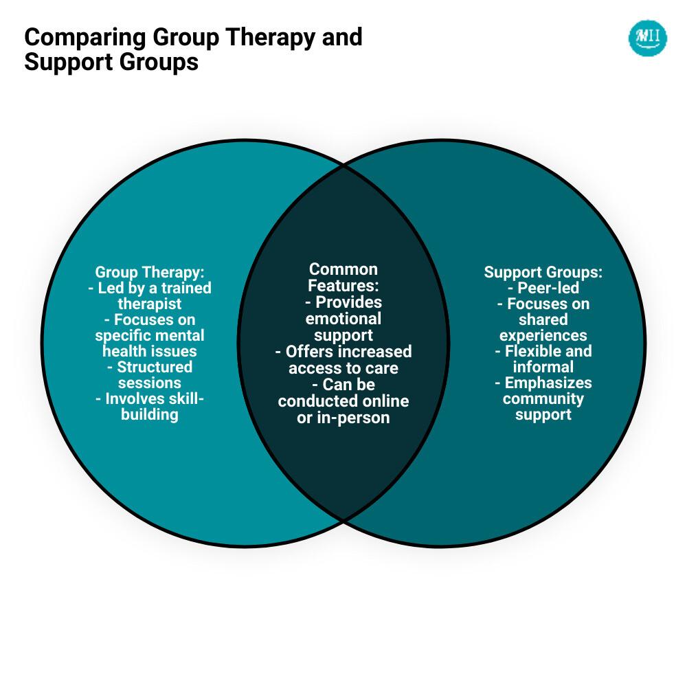 The key difference? IOPs and standard therapy are clinician-led treatment programs, while support groups are peer-led communities built on shared experience.